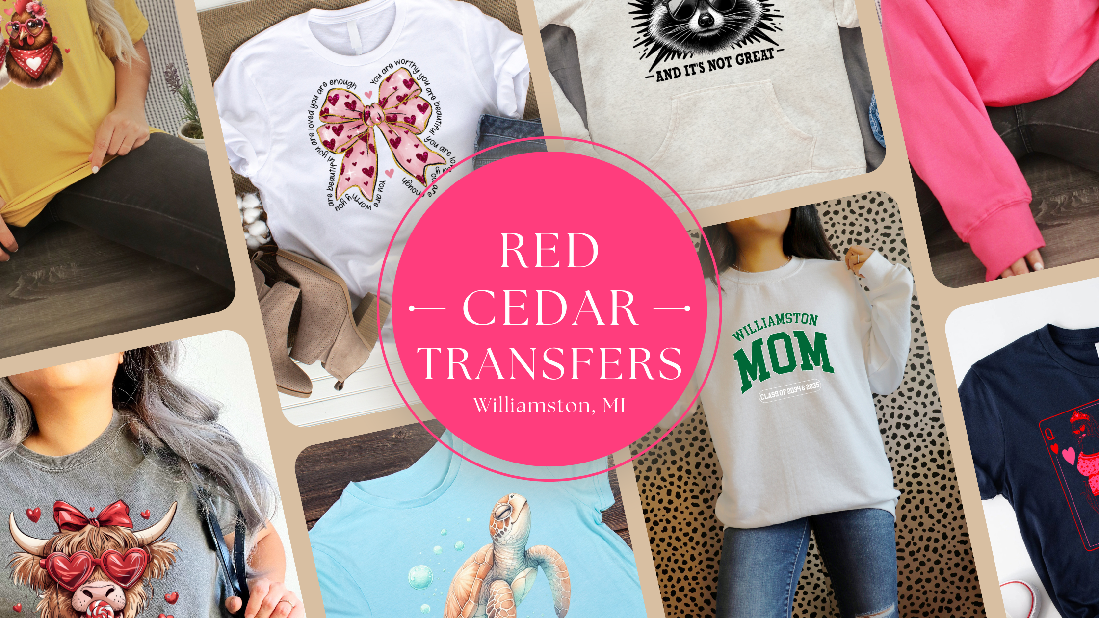 Hello! We are Melissa & Kyle Walch, the owners of Red Cedar Transfers. We look forward to helping your small business or hobby flourish, whether its providing quick and reliable transfers or providing exceptionally branded workwear and customized apparel! Our business is located in Williamston MI, and we offer local pick-up at our storefront downtown. We cant wait to see how we can help you with your next project!